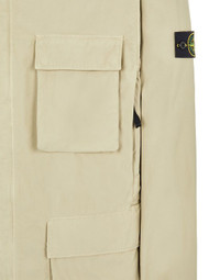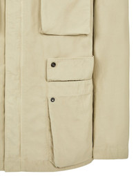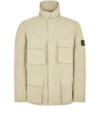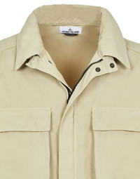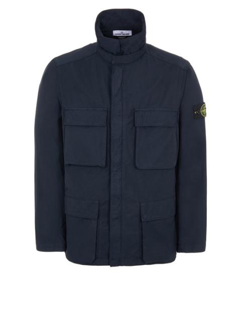 FABRIC RESEARCH AND TREATMENT GARMENT-DYED NYLON COTTON BATAVIA Field jacket made of a nylon warp and cotton weft fabric, with a 2/2 Batavia construction. The garment dyeing process, with the addition of an anti-drop agent, enhances the color rendering of the fabric. STYLE Snap at collar. Two bellows chest pockets, with flap and hidden snap fastenings. Two bellows hand pockets, with flap and hidden snap fastenings. Inner elasticized drawstring on back. Stone Island badge on the left sleeve. Tightening snap at cuffs. Elasticized drawstring in the bottom hem. COMPOSITION 63% Polyamide / Nylon, 37% Cotton