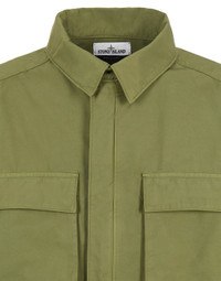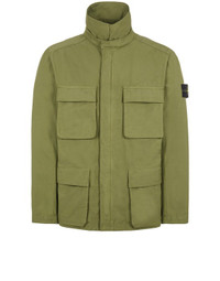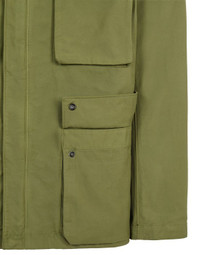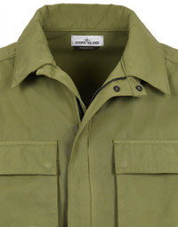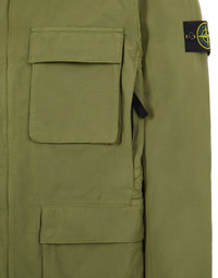 FABRIC RESEARCH AND TREATMENT GARMENT-DYED NYLON COTTON BATAVIA Field jacket made of a nylon warp and cotton weft fabric, with a 2/2 Batavia construction. The garment dyeing process, with the addition of an anti-drop agent, enhances the color rendering of the fabric. STYLE Snap at collar. Two bellows chest pockets, with flap and hidden snap fastenings. Two bellows hand pockets, with flap and hidden snap fastenings. Inner elasticized drawstring on back. Stone Island badge on the left sleeve. Tightening snap at cuffs. Elasticized drawstring in the bottom hem. COMPOSITION 63% Polyamide / Nylon, 37% Cotton