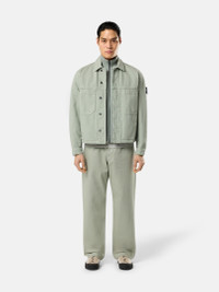 Coach jacket in lightweight 13oz denim with a compact twill structure, featuring multiple pockets, buttoned cuffs, and a concealed button fastening. Garment dyed with anti-drop. FABRIC RESEARCH AND TREATMENT Coach jacket made from lightweight 13oz denim, woven with a compact 3/1 twill structure that creates the signature diagonal pattern of denim and lends remarkable durability to the fabric. Garment dyed using specific recipes. Treated with a specific anti-drop agent. STYLE AND FIT Front yoke. Patch chest pockets with concealed snap. Vertical welt hand pockets. Internal top-entry pockets. Stone Island Denim Research badge on left sleeve. Button at cuffs. Concealed button fastening. COMPOSITION AND CARE 100% Cotton