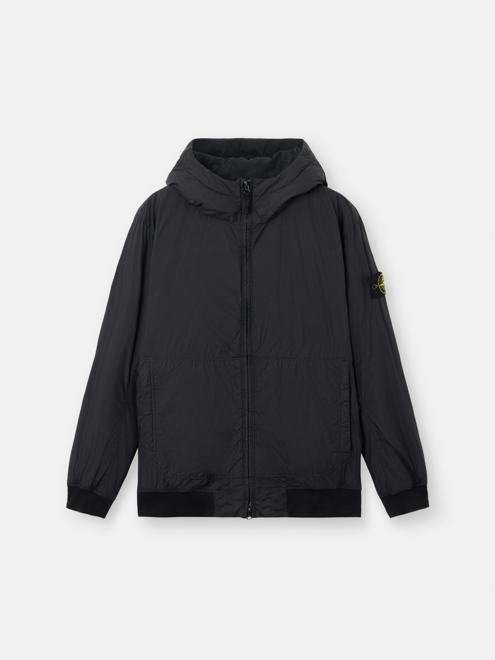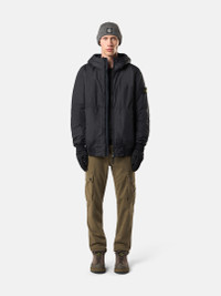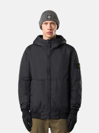 Jacket in a light recycled nylon rep padded with PrimaLoft®-TC, whose inner resin coating makes the garment wind resistant with a crinkled appearance. Garment dyed with anti-drop. FABRIC RESEARCH AND TREATMENT Padded jacket in a light recycled nylon rep with an ultra-tight weaving construction. The resin coating of its inner face makes it wind resistant and mildly water resistant. Due to the resin treating of the material, the color penetrates unevenly into the material, lending a crinkled appearance to the surface. Padded with PrimaLoft®-TC, an exclusive blend of high-performance insulating fibers, 70% recycled, engineered with Stone Island for garment dyeing. Garment dyed with the addition of a special anti-drop agent. STYLE AND FIT Hood with fixed inner drawstring for adjustable contour and horizontal fit. Standing patch hand pockets with hidden zipper. One inner pocket with button. Stone Island badge on left sleeve. Elasticated ribbed cuffs and bottom band. Hidden two-way zipper fastening. COMPOSITION AND CARE Garment: 100% Polyamide / Nylon. Coating: 100% Polyurethanic Resin. Ribbing: 95% Polyamide / Nylon 5% Elastane / Spandex. Lining: 100% Polyamide / Nylon. Hood Lining: 100% Polyamide / Nylon. Padding: 100% Polyester