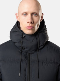Down parka in CORDURA® Advanced Fabrics ripstop nylon with a matt appearance and water resistance, featuring snap-fastened pockets with snap, drawstring hem, and two-way zipper. FABRIC RESEARCH AND TREATMENT Down parka in a CORDURA® Advanced Fabrics ripstop nylon 6.6. The 30 denier Taslan yarns lend a matt appearance and a cotton-like hand to the material. The fabric is lightweight yet extremely durable. A special treatment renders it water repellent. The piece is padded with the finest feathers. RDS - Responsible Down Standard certified. STYLE AND FIT Padded hood with contour drawstring. Standing hand pockets with snap. One inner pocket with Stone Island Compass logo embroidery and button fastening. Stone Island badge on left sleeve. At cuffs, one snap to fasten triangular hand-protecting flap into sleeve; adjustable strap with snaps. Drawstring at hem. Two-way zipper fastening. COMPOSITION AND CARE External Fabric: 100% Polyamide / Nylon. Lining: 100% Polyamide / Nylon. Padding: Duck Down (Minimum 80% Down) 80% Duck Down 20% Duck Feather. Contains Non-textile Parts Of Animal Origin
