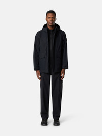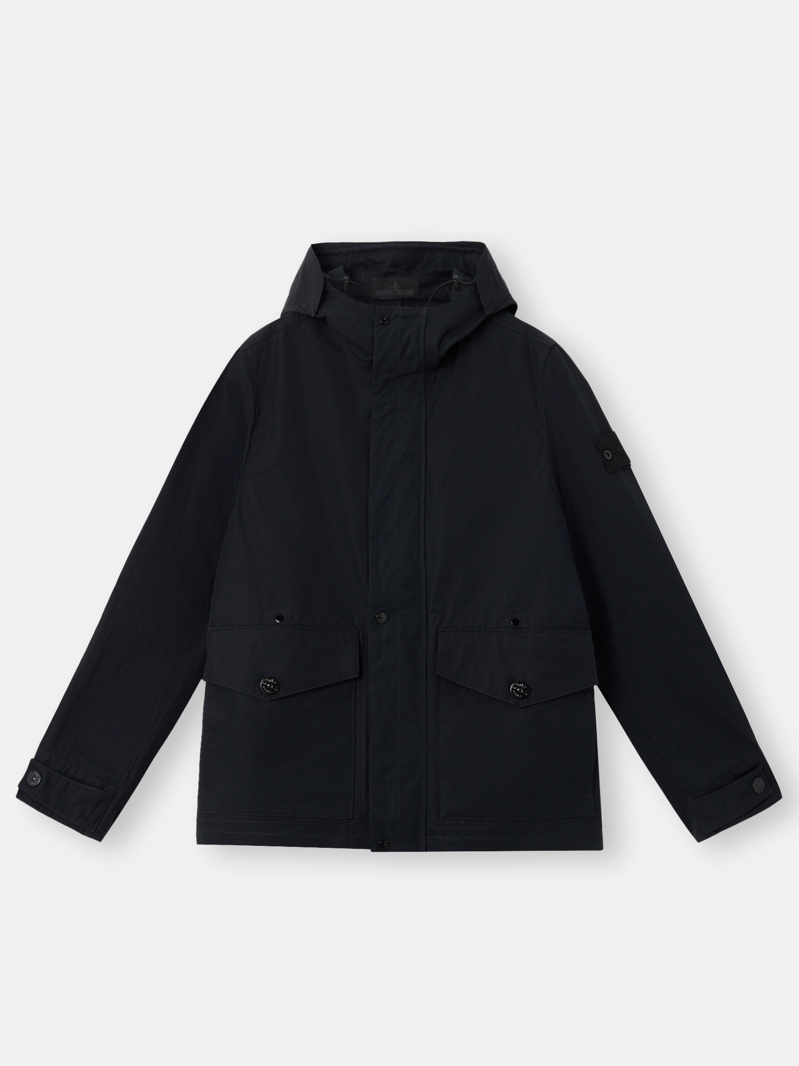 Hooded jacket in a cotton canvas made from the finest premium cotton fibers that provide an excellent and entirely natural weather barrier that is windproof, breathable, and durable. FABRIC RESEARCH AND TREATMENT Ghost pieces, derived from the concept of camouflage, are totally monochromatic. Even the Stone Island badge is created in a special monocolor version to blend in with the garment. Hooded jacket made of a tightly woven cotton canvas fabric using the finest, long-staple premium organic cotton fibers. The combination of dense weaving and swelling properties of the fiber when wet provides an excellent weather barrier with no need of extra coating or lamination. It is entirely natural, offering a unique level of comfort and touch. It is windproof, breathable and very durable. STYLE AND FIT Hood with visor and inner contour drawstring. Patch hand pockets with flap and button fastening. Internal large patch pockets with snap fastening. Stone Island Ghost badge on the left sleeve. Adjustable strap at cuffs held by one snap. Hidden two-way zipper fastening under snap-fastened placket. COMPOSITION AND CARE 100% Cotton