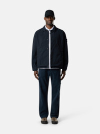 Coach jacket in lightweight polyester canvas with a matt appearance and cotton-like hand, featuring multiple pockets, a drawcord hem, and snap fastening. Garment dyed with anti-drop. FABRIC RESEARCH AND TREATMENT Coach jacket in lightweight canvas made with 60% recycled polyester, featuring a super matt appearance and a cotton-like hand. The fabric compacts and takes on its final appearance through the garment-dyeing procedure at 130° under pressure. The addition of a special agent to the dye recipe makes the garment anti-drop. STYLE AND FIT Collar with snap to wear standing. Angled welt hand pockets with double snap. Internal top-entry pockets. Raglan sleeves on back. Stone Island badge on left sleeve. Internal elasticated cuff. Drawcord at hem. Snap fastening. COMPOSITION AND CARE Garment: 64% Polyester 36% Elastomultiester / Elasterel-p Garment Details: 70% Polyester 30% Polyamide / Nylon