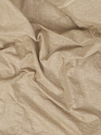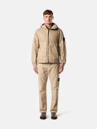 Hooded jacket in an innovative nylon panama fabric designed to mimic natural fibers while offering greater lightness and strength, featuring zipper pockets and elasticated cuffs. Garment dyed. FABRIC RESEARCH AND TREATMENT Hooded jacket made of an innovative Made in Japan 100% nylon fabric with an impressive organic appearance. The super-thin nylon extrusions are cut, mixed, blown, carded, twisted and spun to mimic natural fibers. The resulting panama weaved calendered fabric is lighter and stronger than natural fabrics. The garment dyeing procedure, thanks to the uneven penetration into the calendered fabric, lends a marbled look to the surface. Garment dyed using specific recipes with the addition of a special anti-drop agent. STYLE AND FIT Lined hood with fixed elasticated drawcord. Front yoke. Angled hand pockets with concealed zipper. Stone Island badge on left sleeve. Elasticated cuffs. Drawcord with stoppers at bottom hem. High-neck two-way zipper fastening. COMPOSITION AND CARE External Fabric: 100% Polyamide / Nylon Hood Lining: 100% Polyamide / Nylon