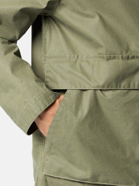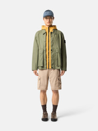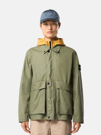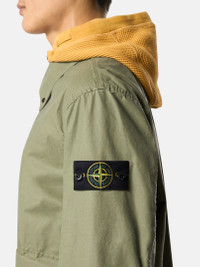 Coach jacket in a cotton-polyester canvas coated with pigmented wax to create a writing-effect surface, featuring layered pockets, adjustable cuffs, and a two-way zipper. FABRIC RESEARCH AND TREATMENT Coach jacket in a white cotton-polyester canvas in an intimate blend that is colored through the application of a pigmented wax coating with a writing effect on the outer face and a glossy rubberized coating in matching tone on the reverse. STYLE AND FIT Collar with snap to wear standing. Top-entry bellows hand pockets with flap and concealed snap, with overlapping angled pockets. Eyelets under back armholes. Stone Island badge on left sleeve. Adjustable cuffs with snap. Two-way zipper fastening under snap placket. COMPOSITION AND CARE External Fabric: 65% Polyester 35% Cotton - Excluding The Coating Secondary Fabric: 65% Polyester 35% Cotton