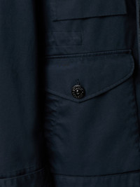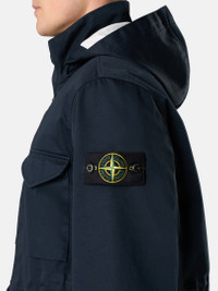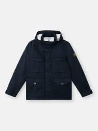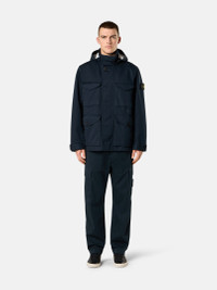 Field jacket in a three-layer performance fabric composed of a cotton satin bonded to a breathable, waterproof and windproof membrane, protected with a polyester mesh. Garment dyed. FABRIC RESEARCH AND TREATMENT Field jacket in Raso Gommato 3L. An evolution of the iconic Stone Island Raso Gommato fabric, this performance version is made from a military-specification cotton satin bonded to a breathable, waterproof and windproof membrane, protected with a polyester mesh. Garment dyed using specific recipes with the addition of a special anti-drop agent. STYLE AND FIT Detachable hood with contour drawstring. Standing collar. Bellows chest pockets with flap and hidden snap fastening. Double hand pockets, one with flap and button fastening and second slanted pocket on top. Inner drawstring at waist. Stone Island badge on the left sleeve. Adjustable strap at cuffs held by snap. Hidden two-way zipper and snap fastening. COMPOSITION AND CARE Outer Layer: 100% Cotton. Membrane: 100% Polyurethane. Inner Layer: 100% Polyester