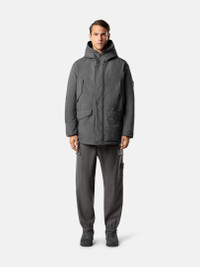 Down short parka in David-TC with a unique tactile effect achieved through heat-induced compression, featuring a padded hood, snap pockets, and two-way zipper. Garment dyed with anti-drop. FABRIC RESEARCH AND TREATMENT Ghost pieces, derived from the concept of camouflage, are totally monochromatic. Even the Stone Island badge is created in a special monocolor version to blend in with the garment. Down short parka in David-TC. Beginning with a star-shaped cross-section Japanese polyester/polyamide substrate, garments in David-TC are sewn and then simultaneously garment-dyed and treated with an anti-drop agent. During the dye process, under pressure at 130°C, the fabric undergoes heat-induced compression, radically transforming its texture and construction for a truly unique tactile effect. Padded with the finest feathers. RDS - Responsible Down Standard certified. STYLE AND FIT Padded hood. Slanted chest pockets. Hand pockets with triangular flap and snap. Inner pocket with button and Compass logo embroidery. Stone Island Ghost badge on left sleeve. Elasticated ribbed internal cuffs. Two-way zipper fastening under concealed snap placket. COMPOSITION AND CARE External Fabric: 70% Polyester 30% Polyamide / Nylon. Ribbing: 100% Polyester. Lining: 100% Polyamide / Nylon. Padding: Duck Down (Minimum 80% Down) 80% Duck Down 20% Duck Feather Contains Non-textile Parts Of Animal Origin