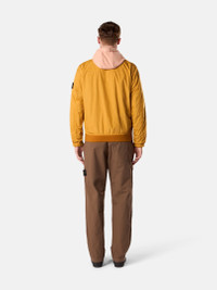 Stand collar jacket in light recycled nylon rep with a crinkled appearance, featuring snap-fastened pockets, elasticated cuffs, and a two-way zipper. Garment dyed with anti-drop. FABRIC RESEARCH AND TREATMENT Stand collar jacket in a light recycled nylon rep with an ultra-tight weaving construction. The resin coating of its inner face makes it wind resistant and mildly water resistant. Due to the resin treating of the material, the color penetrates unevenly into the material, lending a crinkled appearance to the surface. Garment dyed with the addition of a special anti-drop agent. STYLE AND FIT Stand collar with ribbed lining and tape trim along back. Angled welt hand pockets with tape trim and snap. Back yoke. Stone Island badge on left sleeve. Elasticated cuffs. Ribbed bottom band. Two-way zipper fastening. COMPOSITION AND CARE External Fabric: 100% Polyamide / Nylon Coating: 100% Polyurethanic Resin Ribbing: 95% Polyamide / Nylon 5% Elastane / Spandex Lining: 100% Polyamide / Nylon