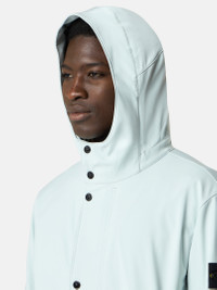 Hooded jacket in a three-ply performance material with 8000 MM water column, featuring zipper pockets, ribbed trims, and a two-way zipper. FABRIC RESEARCH AND TREATMENT Hooded jacket in a three-ply performance material with an 8000 MM water column. The polyester stretch canvas outer face is woven with yarns using the e.dye® Waterless Color System™ technology, the innovative yarn color saturation system. The fabric is laminated to a breathable, water- and wind-resistant inner membrane, protected by a textured polyester jersey backing layer. The outer structure of the material gives great flexibility and comfort to the garment. STYLE AND FIT Hood with internal drawstring. Angled hand pockets with concealed zipper. Stone Island badge on left sleeve. Ribbed cuffs and bottom band. Back yoke. Two-way zipper fastening on tape under snap placket. COMPOSITION AND CARE Garment: Outer Layer: 92% Polyester 8% Elastane / Spandex Membrane: 100% Polyurethanic Resin Inner Layer: 100% Polyester Ribbing: 98% Polyester 2% Elastane / Spandex
