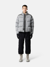 Down jacket in iridescent Nylon Metal made from ECONYL® regenerated yarns, featuring pockets and two-way zipper. Garment dyed with a double color recipe and anti-drop. FABRIC RESEARCH AND TREATMENT Down jacket in Stone Island's iridescent Nylon Metal fabric. The evolution of this iconic fabric sees the use of ECONYL® regenerated yarns: the life-ended nylon, pre- and post-consumer, is recycled with a complex depolymerization process to create this fiber that features the same intrinsic characteristics of nylon from fossil raw material. Garment dyed with a double color recipe and the addition of a special anti-drop agent. Padded with the finest feathers specifically treated to withstand the garment dyeing procedure. RDS - Responsible Down Standard certified. STYLE AND FIT Standing collar. Slanted hand pockets with snap. Stone Island badge on left sleeve. Two-way zipper under snap-fastened placket. COMPOSITION AND CARE External Fabric: 100% Polyamide / Nylon. Lining: 100% Polyamide / Nylon. Padding: Duck Down (Minimum 80% Down) 80% Duck Down 20% Duck Feather. Contains Non-textile Parts Of Animal Origin