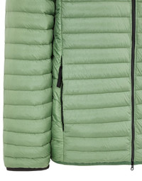 FABRIC RESEARCH AND TREATMENT PACKABLE_LOOM WOVEN CHAMBERS R-NYLON DOWN-TC: Light down jacket made of a 100% recycled light nylon which, through a special weaving technique, automatically creates compartments on the loom. Seams are thus avoided, with the advantage of substantially increasing the hold of the feathers inside the chambers. The fabric undergoes a ‘ciré’ finish to achieve a shiny appearance. The finished garment is padded via direct injection with the finest feathers, specifically treated to withstand the garment dyeing process. The addition of a special PFC-free agent to the dye formula gives the piece an anti-drop finish. STYLE Packable: the folded jacket can be stowed in its inner pocket. Standing collar edged in elasticated tape taking the dye color recipe. In-seam hand pockets with hidden zipper fastenings. Stone Island badge on the left sleeve. Black elasticized tape at cuffs. Bottom line edged in elasticized tape taking the dye color recipe. Two-way zipper fastening. COMPOSITION External fabric: 100% Polyamide / Nylon TRIM: 100% Polyamide / Nylon Lining: 100% Polyamide / Nylon Padding (Feather): EIDERDOWN (Minimum 90% Down) 90% EIDERDOWN, 10% DUCK FEATHER Contains non-textile parts of animal origin