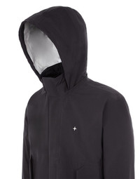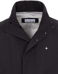 FABRIC RESEARCH AND TREATMENT STONE ISLAND STELLINA_3L BIO-BASED NYLON: Jacket made of a 3-layer performance fabric. The outer face is in nylon canvas composed of 60% bio-based polymers, derived from the processing of castor beans and 40% of traditional nylon. The fabric is laminated to an inner breathable, wind and waterproof membrane, protected by a run-proof polyester layer. The garment, with heat-taped seams, is treated with a PFC-free anti-drop agent. STYLE Standing collar hosting the concealed hood. Embroidery of the Stone Island little star on the chest. Two sets of hand pockets: two with slanting entrance with flap and hidden snap fastening, two standing, with weatherproof zipper fastening. Tightening snap on tape at cuffs. Two-way hidden weatherproof zipper and hidden snap fastenings. COMPOSITION GARMENT: OUTSIDE: 100% Polyamide / Nylon MEMBRANE: 100% Polyurethane INSIDE: 100% Polyester