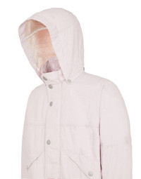 FABRIC RESEARCH AND TREATMENT STONE ISLAND MARINA_RAW PLATED LINEN: Hooded blouson made of a light pure raw linen canvas, externally plated with special colored pigmented resins. Garment washing ‘moves’ the resin, revealing the natural slub of the linen. Treated with PFC-free anti-drop agent. COMPOSITION External fabric: 100% Flax/Linen Coating: 100% Acrylic resin