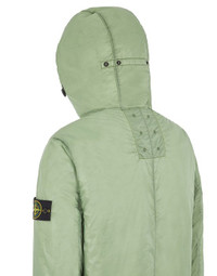 FABRIC RESEARCH AND TREATMENT PACKABLE_GARMENT DYED MICRO YARN WITH PRIMALOFT®-TC: Hooded jacket in a 10-deniers calendered fabric, made from nylon microfilaments with a ripstop construction which undergoes an invisible soft touch strengthening finishing. The garment is padded with a layer of PrimaLoft®-TC, an exclusive blend of insulating fibers, 70% recycled, engineered with STONE ISLAND to withstand the high temperatures of the garment dyeing procedures without compromising loft or insulating properties. The addition of a special PFC-free agent to the dye formula gives the piece an anti-drop finish. STYLE Packable: the folded jacket can be stowed in its inner pocket and secured through elasticized strap and snap. Hood with contour drawstring; tightening snaps on sides. Patch hand pockets with slanting entrance, flap and hidden snap fastening. Stone Island badge on the left sleeve. Tightening snap at cuffs. Drawstring in the bottom hem. Ventilation eyelets in an inset under the neckline on back. Two-way zipper fastening. COMPOSITION External fabric: 100% Polyamide / Nylon - Coating: Polyurethane resin Lining: 100% Polyamide / Nylon - Coating: Polyurethane resin Padding: 100% Polyester