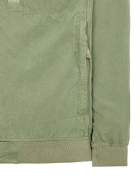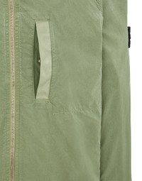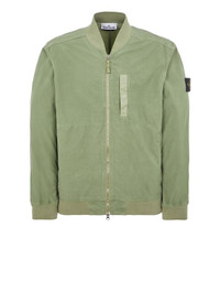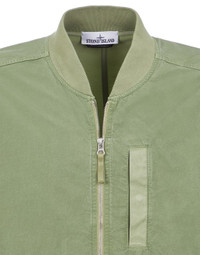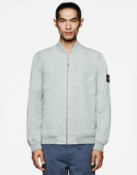 FABRIC RESEARCH AND TREATMENT CUPRO COTTON TWILL- TC: Bomber jacket made of a special twill weave fabric, with a cotton weft and Cupro warp, an artificial fiber by-product of the cotton industry, derived from the short filaments near the seed. The result is a full-bodied and ductile fabric, with a shiny appearance. The dyeing bath, thanks to the uneven penetration of the color, gives the surface a wavy appearance boosting the chromatic appearance. The addition of a special PFC-free agent to the dyeing recipe gives the garment anti-drop characteristics. STYLE Ribbed collar. One standing chest pocket, with hidden snap fastening on cotton tape. In-seam hand pockets with hidden zipper fastenings. Stone Island badge on the left sleeve. Ribbed cuffs and bottom band. Two-way zipper fastening. COMPOSITION 53% Cupro (cuprammonium rayon), 47% Cotton