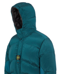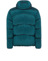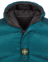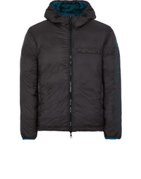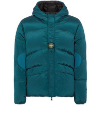FABRIC RESEARCH AND TREATMENT NYLON METAL IN ECONYL® REGENERATED NYLON DOWN_REVERSIBLE: Reversible down jacket made in Nylon Metal, a material with a metallic and iridescent look when garment dyed. The evolution of this iconic fabric sees the use of ECONYL® regenerated yarns: the end-of-life nylon, pre- and post-consumer, is recycled with a complex depolymerization process to create this fiber that features the same intrinsic characteristics of nylon from fossil raw material. The piece is padded with the finest feathers, specifically treated to withstand the garment dyeing procedure. Garment dyed with a double-color recipe, with the addition of a special PFC-free anti-drop agent. The other side of the jacket is in light nylon canvas. Padded with premium feathers. RDS - Responsible Down Standard certified. STYLE Hood with elasticized contour drawstring. Central on chest, strap with snap holding the Stone Island badge. Two hand pockets, with fixed flap and hidden snap fastening. Elasticized drawstring in the bottom hem. Fastened through two-way zipper concealed under hidden snap placket. The other side of the jacket features the embroidery of the Stone Island lettering on the left sleeve. Chest pocket with snap fastening. Standing hand pockets with zipper closure. Side ribbing. COMPOSITION External fabric: 100% Polyamide / Nylon RIBBING: 98% Polyamide / Nylon, 2% Elastane / Spandex Lining: 100% Polyester Padding (Feather): Duck down (Minimum 80% Down) 80% Duck down, 20% DUCK FEATHER Contains non-textile parts of animal origin
