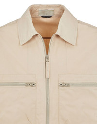 FABRIC RESEARCH AND TREATMENT WEATHERPROOF COTTON CANVAS_ GHOST PIECE: Ghost pieces are based on the concept of camouflage and are totally monochromatic. Even their Stone Island badge has been created in a special monochrome version to blend with the garment. Shirt jacket made of a tightly woven cotton canvas fabric using the finest, long staple premium cotton fibers. The combination of dense weaving and swelling properties of the fiber when wet provides an excellent all-weather barrier with no need for extra coating or lamination. It is entirely natural, offering a unique level of comfort and texture. It is windproof, breathable and very durable. COMPOSITION 100% Cotton