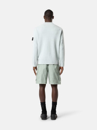 Knit mock neck sweater in cotton chenille with moss stitch, featuring a ribbed neckline, cuffs, and bottom hem. Gauge 5. FABRIC RESEARCH AND TREATMENT Knit mock neck sweater in moss stitch cotton chenille. Gauge 5. STYLE AND FIT Ribbed mock neckline. Stone Island badge on left sleeve. Ribbed cuffs and hem. Loose fit. COMPOSITION AND CARE 100% Cotton
