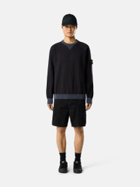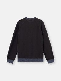 Crewneck sweater in raw hand organic cotton, featuring contrasting ribbed neckline, cuffs, and bottom band, with raglan sleeves and raised seam details. Gauge 7. FABRIC RESEARCH AND TREATMENT Knit crewneck sweater in raw hand organic cotton. Gauge 7. STYLE AND FIT Contrasting ribbed neckline with triangular insert. Raglan sleeves with overlock and raised seam details. Stone Island badge on left sleeve. Contrasting ribbed cuffs and bottom band. Loose fit. COMPOSITION AND CARE Garment: 100% Cotton Ribbing: 100% Cotton