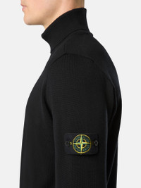 Knit turtleneck sweater in light RWS pure wool featuring a ribbed collar, cuffs, and bottom band. Gauge 14. FABRIC RESEARCH AND TREATMENT Knit turtleneck sweater in light RWS pure wool. Stockinette stitch. Gauge 14. STYLE AND FIT Ribbed collar. Stone Island badge on left sleeve. Ribbed cuffs and bottom band. Regular fit. COMPOSITION AND CARE 100% Virgin Wool