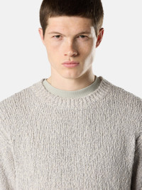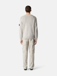 Knit crewneck sweater in speckled cotton, featuring ribbed neckline, cuffs, and hem. Gauge 3. FABRIC RESEARCH AND TREATMENT Knit crewneck sweater in speckled cotton. Gauge 3. STYLE AND FIT Ribbed neckline. Stone Island badge on left sleeve. Ribbed cuffs and hem. Loose fit. COMPOSITION AND CARE 100% Cotton