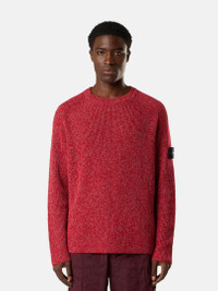 Knit crewneck sweater in a linen-wool and polyester blend with a reflective coating created through a resin bath that incorporates thousands of glass microspheres. Gauge 7. FABRIC RESEARCH AND TREATMENT Knit crewneck sweater made from a linen-wool yarn and a polyester yarn with a reflective coating created through a resin bath that incorporates thousands of glass microspheres that reflect light. Reverse fisherman's rib. Gauge 7. STYLE AND FIT Ribbed neckline. Raglan sleeves with ribbed bands. White Stone Island fabric research badge on left sleeve. Raw edges along cuffs and bottom. Loose fit. COMPOSITION AND CARE 34% Polyester 33% Flax 33% Virgin Wool