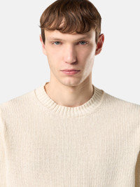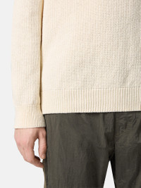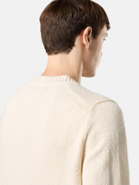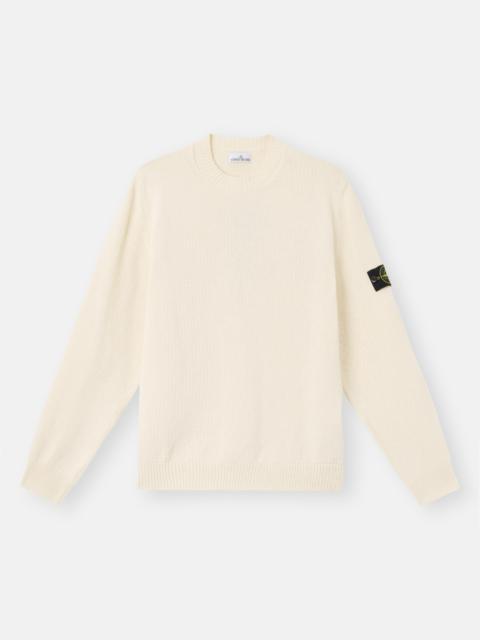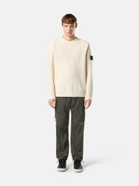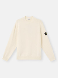 Knit crewneck sweater made from raw-hand organic cotton, featuring ribbed neckline, cuffs, and bottom band. Gauge 7. FABRIC RESEARCH AND TREATMENT Knit crewneck sweater in raw-hand ribbed organic cotton. Gauge 7. STYLE AND FIT Ribbed neckline. Stone Island badge on the left sleeve. Ribbed cuffs and bottom band. Regular fit. COMPOSITION AND CARE 100% Cotton