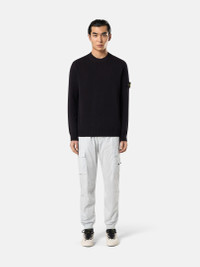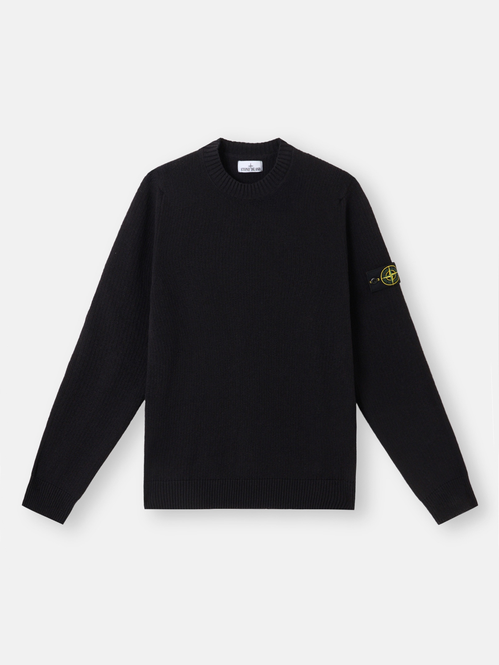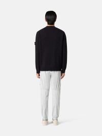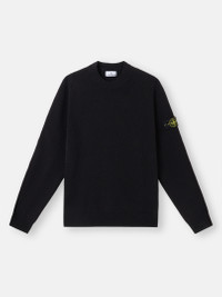 Knit crewneck sweater made from raw-hand organic cotton, featuring ribbed neckline, cuffs, and bottom band. Gauge 7. FABRIC RESEARCH AND TREATMENT Knit crewneck sweater in raw-hand ribbed organic cotton. Gauge 7. STYLE AND FIT Ribbed neckline. Stone Island badge on the left sleeve. Ribbed cuffs and bottom band. Regular fit. COMPOSITION AND CARE 100% Cotton