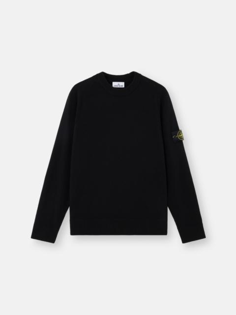 Knit crewneck sweater in light RWS Geelong wool featuring ribbed bands on raglan sleeves, and ribbed cuffs and bottom band. Gauge 12. FABRIC RESEARCH AND TREATMENT Knit crewneck sweater in light RWS Geelong wool. Stockinette stitch. Gauge 12. STYLE AND FIT Ribbed neckline. Raglan sleeves with ribbed bands. Stone Island badge on left sleeve. Ribbed cuffs and bottom band. Loose fit. COMPOSITION AND CARE 100% Virgin Wool