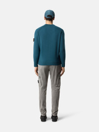 Knit crewneck sweater in light RWS Geelong wool featuring ribbed bands on raglan sleeves, and ribbed cuffs and bottom band. Gauge 12. FABRIC RESEARCH AND TREATMENT Knit crewneck sweater in light RWS Geelong wool. Stockinette stitch. Gauge 12. STYLE AND FIT Ribbed neckline. Raglan sleeves with ribbed bands. Stone Island badge on left sleeve. Ribbed cuffs and bottom band. Loose fit. COMPOSITION AND CARE 100% Virgin Wool