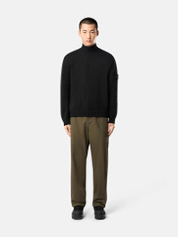 Knit turtleneck sweater in winter cotton with half fisherman’s rib, ribbed collar, cuffs, and bottom band. Gauge 7. FABRIC RESEARCH AND TREATMENT Knit turtleneck sweater in winter cotton. Half fisherman’s rib. Gauge 7. STYLE AND FIT Ribbed collar. Stone Island badge on left sleeve. Ribbed cuffs and bottom band. Loose fit. COMPOSITION AND CARE 79% Cotton 21% Elastomultiester / Elasterel-p