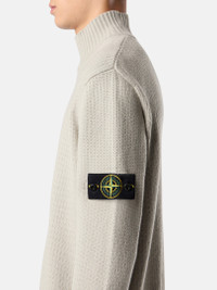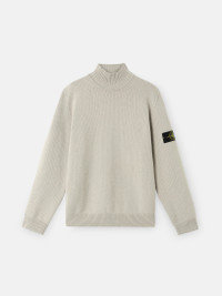 Knit turtleneck sweater in winter cotton with half fisherman’s rib, ribbed collar, cuffs, and bottom band. Gauge 7. FABRIC RESEARCH AND TREATMENT Knit turtleneck sweater in winter cotton. Half fisherman’s rib. Gauge 7. STYLE AND FIT Ribbed collar. Stone Island badge on left sleeve. Ribbed cuffs and bottom band. Loose fit. COMPOSITION AND CARE 79% Cotton 21% Elastomultiester / Elasterel-p
