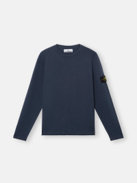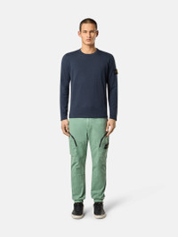 Knit crewneck sweater made from organic cotton and nylon featuring small roll details. Gauge 14. FABRIC RESEARCH AND TREATMENT Knit crewneck sweater in organic cotton and nylon. Stockinette stitch. Gauge 14. STYLE AND FIT Flat neckline. Small roll on armholes. Stone Island badge on the left sleeve. Flat cuffs and bottom band with small roll finish. Regular fit. COMPOSITION AND CARE 78% Cotton 22% Polyamide / Nylon