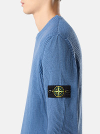Knit crewneck sweater in full rib RWS wool featuring a ribbed neckline, finely ribbed cuffs with horizontal stitching, and a finely ribbed bottom band. Gauge 12. FABRIC RESEARCH AND TREATMENT Knit crewneck sweater in full rib RWS wool. Gauge 12. STYLE AND FIT Ribbed neckline. Stone Island badge on left sleeve. Finely ribbed cuffs with horizontal stitching along hem. Finely ribbed bottom band. Regular fit. COMPOSITION AND CARE 100% Virgin Wool