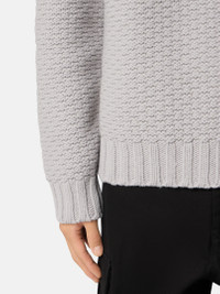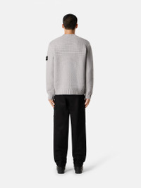 Knit mock neck sweater in pure wool with mixed stitches and wide ribbed trims at neckline, cuffs, and hem. Gauge 3. FABRIC RESEARCH AND TREATMENT Knit mock neck sweater in pure wool. Mixed stitches. Gauge 3. STYLE AND FIT Neckline, cuffs, and bottom band with full wide ribbing. Stone Island badge on left sleeve. Loose fit. COMPOSITION AND CARE 100% Virgin Wool
