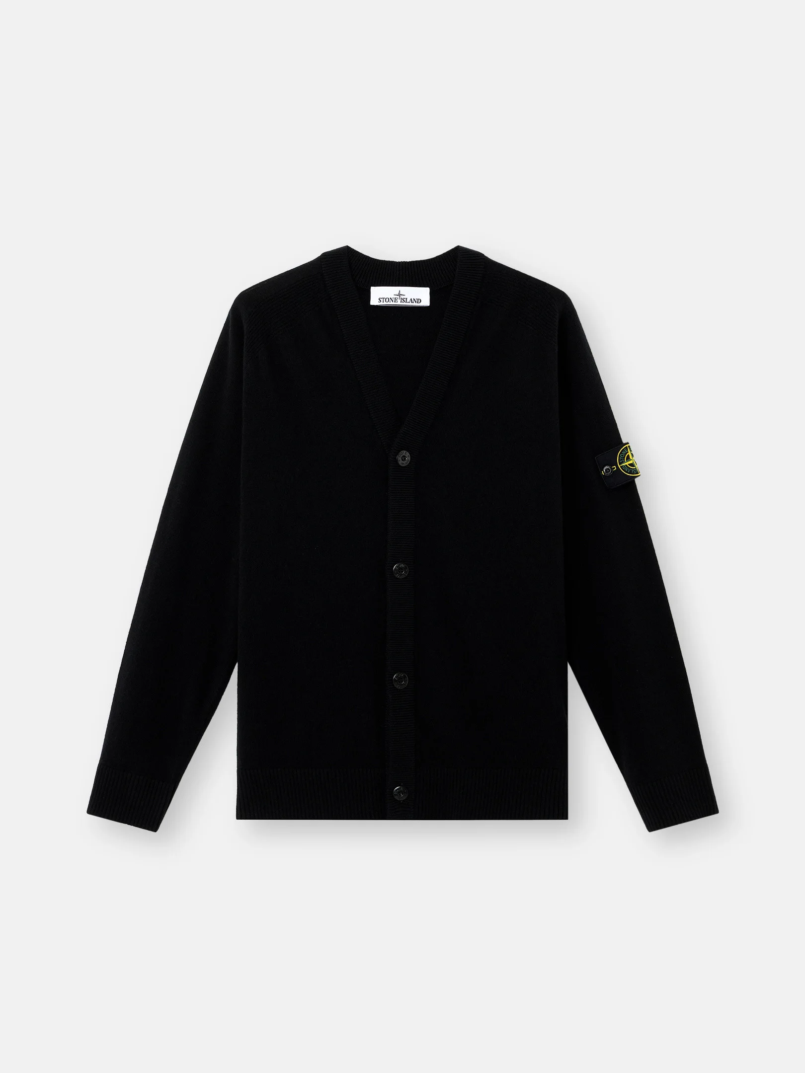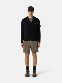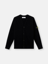 Knit cardigan in light RWS Geelong wool featuring a V-neckline, reverse stitch shoulders, raglan sleeves on the back, and button fastening. Gauge 12. FABRIC RESEARCH AND TREATMENT Knit cardigan in light RWS Geelong wool. Stockinette stitch. Gauge 12. STYLE AND FIT V-neckline. Reverse stitch band at shoulders. Stone Island badge on left sleeve. Ribbed cuffs and bottom band. Raglan sleeves on back. Button fastening. Loose fit. COMPOSITION AND CARE 100% Virgin Wool