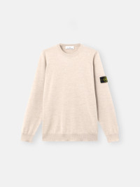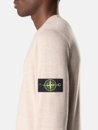 Crewneck sweater in light pure RWS wool, featuring parallel stitched stripes on the back neckline and ribbed trims. Gauge 14. FABRIC RESEARCH AND TREATMENT Knit crewneck sweater in light pure RWS wool. Gauge 14. STYLE AND FIT Ribbed neckline. Parallel stitched stripes on back neckline. Stone Island badge on left sleeve. Ribbed cuffs and bottom band. Regular fit. COMPOSITION AND CARE 100% Virgin Wool