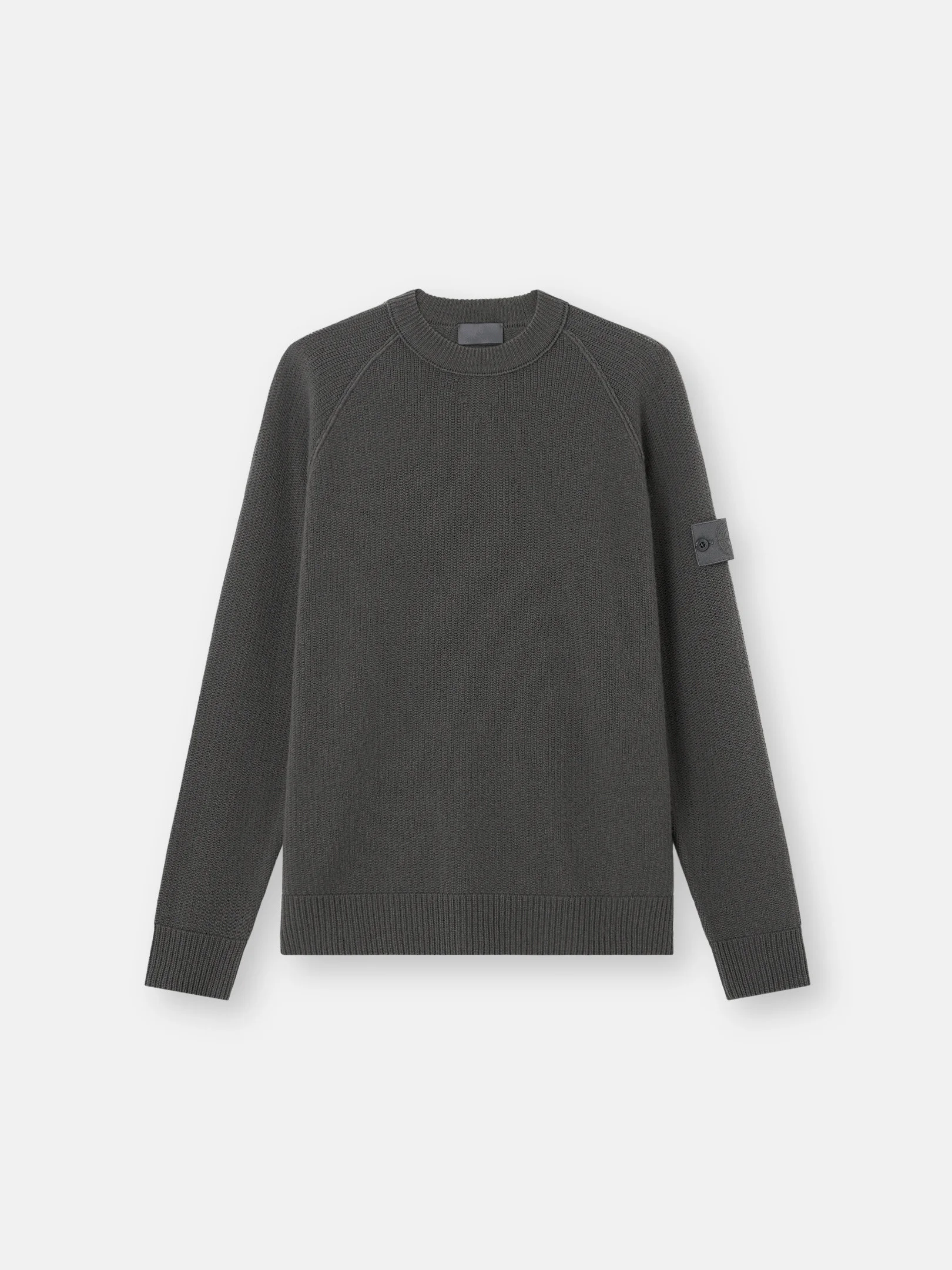 Knit crewneck sweater in pure cashmere with raglan sleeves and ribbed trims. Gauge 7. FABRIC RESEARCH AND TREATMENT Ghost pieces, derived from the concept of camouflage, are totally monochromatic. Even the Stone Island badge is created in a special monocolor version to blend in with the garment. Knit crewneck sweater in pure cashmere. Gauge 7. STYLE AND FIT Ribbed neckline. Raglan sleeves. Stone Island Ghost badge on left sleeve. Ribbed cuffs and bottom band. Loose fit. COMPOSITION AND CARE 100% Cashmere