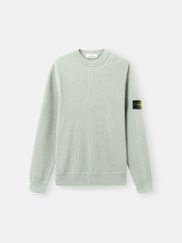 Crewneck sweater in ribbed soft organic cotton, featuring finer ribbing at the cuffs and bottom band. Gauge 12. FABRIC RESEARCH AND TREATMENT Knit crewneck sweater in ribbed soft organic cotton. Gauge 12. STYLE AND FIT Ribbed neckline. Stone Island badge on left sleeve. Cuffs and bottom band in finer ribbing. Regular fit. COMPOSITION AND CARE 100% Cotton