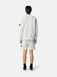 Knit shorts made from a double-face material with nylon on one side and contrast-colored organic cotton on the other. Gauge 14, gauge 7 feel. FABRIC RESEARCH AND TREATMENT Knit shorts in a double face material, nylon outside, contrast-colored organic cotton inside. Stockinette stitch. Gauge 14, gauge 7 feel. STYLE AND FIT Raw-edge seams. Hand pockets with standing entrance and overlock stitch along outer edge. One back patch pocket with overlock stitch along outer edge. Stone Island badge on the left leg. Ribbed elasticated waistband with inner drawstring. Comfort fit. COMPOSITION AND CARE 87% Cotton 12% Polyamide / Nylon 1% Elastane / Spandex
