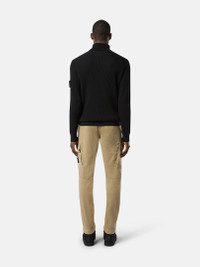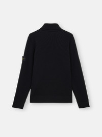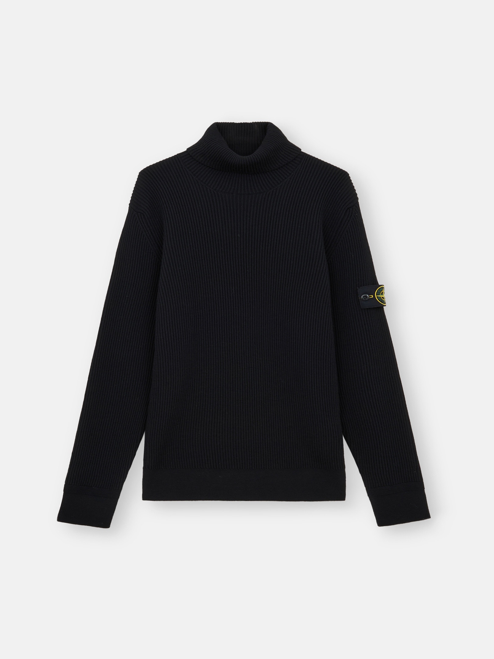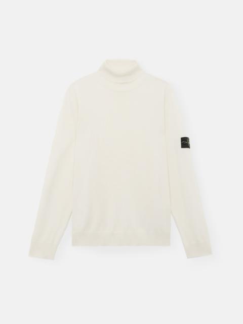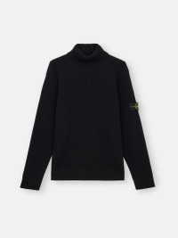 Knit turtleneck sweater in RWS-certified full-rib wool featuring a horizontal band motif above the cuffs and thin ribbed details. 12 gauge. FABRIC RESEARCH AND TREATMENT Turtleneck knit in RWS-certified full-rib wool. 12 Gauge. The Responsible Wool Standard (RWS) describes and certifies animal welfare and land management practices in wool production and tracks the certified material from farm to final product. STYLE AND FIT Stone Island badge on the left sleeve. Horizontal band motif above the cuffs. Thinly ribbed cuffs and bottom band. Regular fit. COMPOSITION AND CARE 100% Virgin Wool