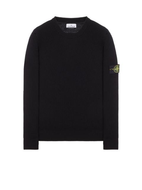 FABRIC RESEARCH AND TREATMENT Crewneck knit in full-rib wool. 12 gauge. STYLE Regular fit. Full-ribbed neckline. Stone Island badge on the left sleeve. Horizontal band motif above the cuffs. Thinly ribbed cuffs and bottom band. COMPOSITION 100% Virgin wool