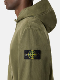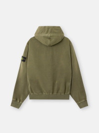 Hooded zipper-up sweatshirt in organic panama cotton featuring ribbed cotton inserts and hand pockets. Garment dyed with the 'OLD' treatment for a slightly worn appearance. FABRIC RESEARCH AND TREATMENT Hooded zipper-up sweatshirt in organic panama cotton. Garment dyed with the 'OLD' treatment, an exclusive dyeing treatment and subsequent fading on the finished garment for a slightly worn and three-dimensional appearance. STYLE AND FIT Hood with ribbed cotton lining around contour and fixed drawstring. Ribbed cotton inserts at shoulders, under armholes, and on sides. Hand patch pockets with slanted entrance. Stone Island badge on left sleeve. Ribbed cotton cuffs and bottom band. Oversized fit. COMPOSITION AND CARE External Fabric: 100% Cotton. Secondary Fabric: 96% Cotton 4% Elastane / Spandex. Hood Lining: 100% Cotton