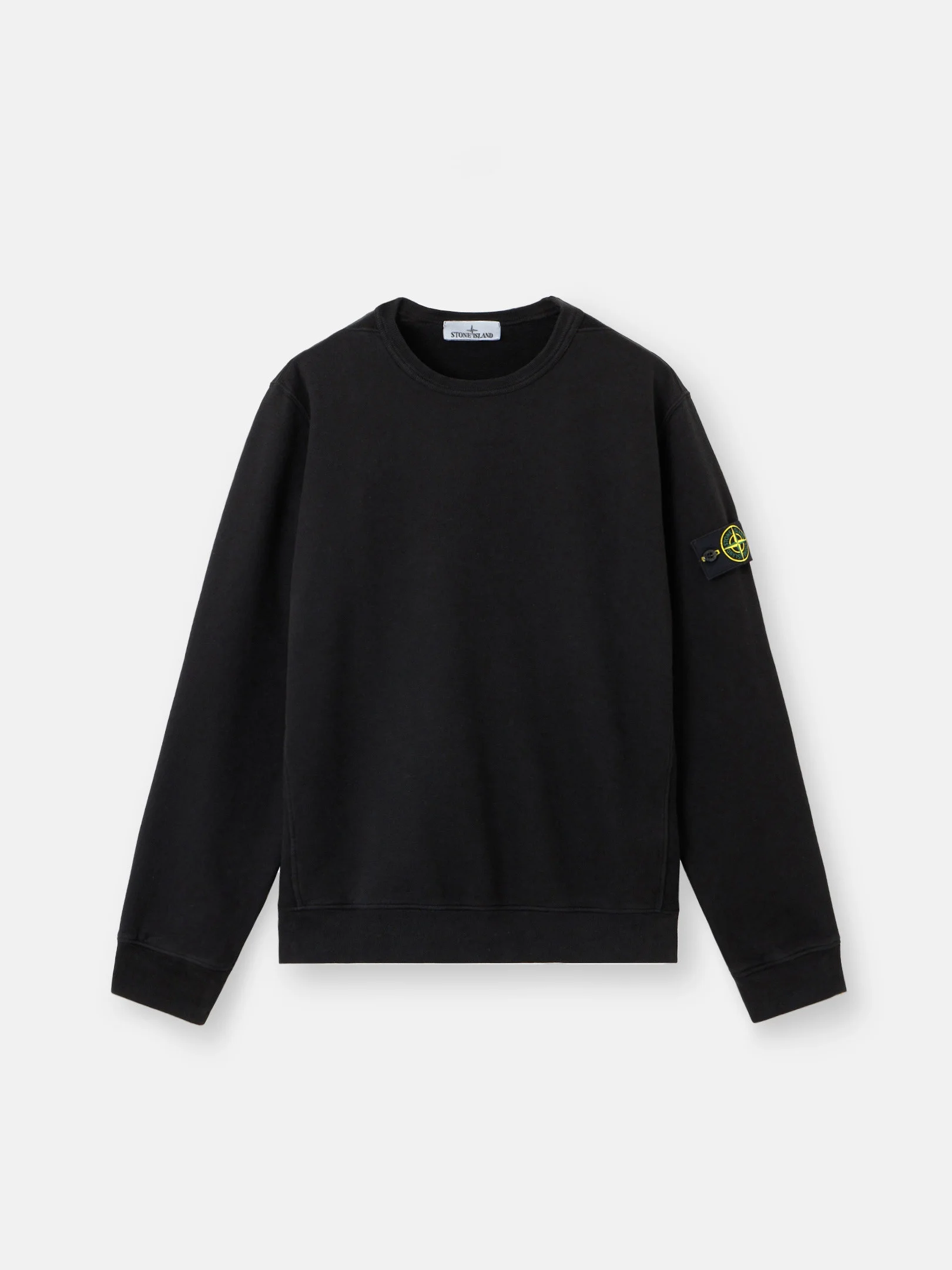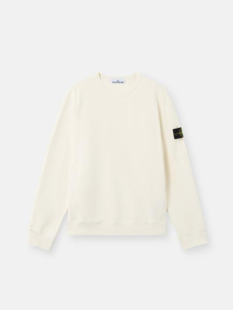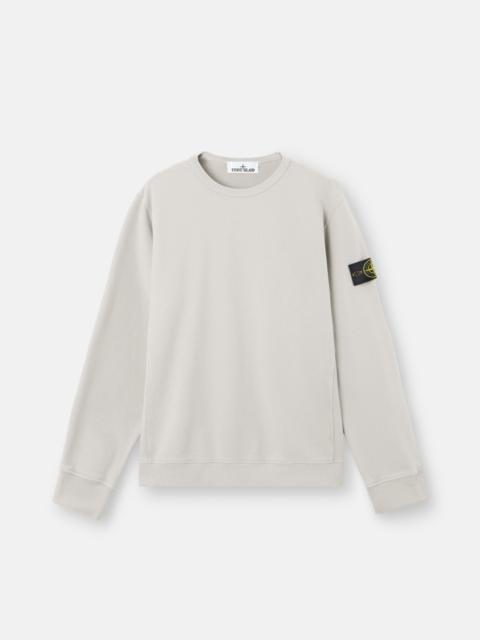 Crewneck sweatshirt in brushed organic cotton fleece featuring ribbed triangular inserts at the shoulders and sides. Garment dyed. FABRIC RESEARCH AND TREATMENT Crewneck sweatshirt in brushed organic cotton fleece. Garment dyed. STYLE AND FIT Ribbed neckline. Triangular ribbed insert at shoulders and down sides. Stone Island badge on left sleeve. Elasticated ribbed cuffs and bottom band. Regular fit. COMPOSITION AND CARE External Fabric: 100% Cotton. Secondary Fabric: 98% Cotton 2% Elastane / Spandex
