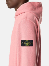 Zipper-up hooded sweatshirt in malfile cotton fleece with slub effect, featuring hand pockets, internal pockets, and overlock stitching. Lightweight. Garment dyed with the “OLD” treatment for a slightly worn appearance. FABRIC RESEARCH AND TREATMENT Zipper-up hooded sweatshirt in malfile cotton fleece with slub effect. Lightweight. Garment dyed with the “OLD” treatment, an exclusive dyeing treatment and subsequent fading on the finished garment for a slightly worn and three-dimensional appearance. STYLE AND FIT Vertical welt hand pockets with internal tape reinforcement. Internal top-entry pockets. Stone Island badge on left sleeve. Overlock stitching along hood, pocket, and placket edges, and along raised side seams. Ribbed cuffs and bottom band. Concealed high-neck zipper fastening. Regular fit. COMPOSITION AND CARE External Fabric: 100% Cotton Ribbing: 100% Cotton Hood Lining: 100% Cotton