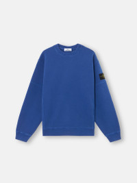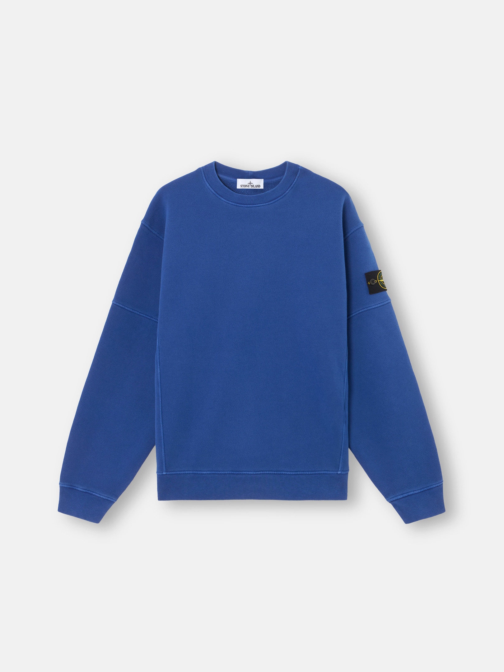 Crewneck sweatshirt made from organic cotton diagonal fleece featuring drop shoulders and ribbed details. Garment dyed with the 'OLD' treatment for a slightly worn appearance. FABRIC RESEARCH AND TREATMENT Crewneck sweatshirt in organic cotton diagonal fleece. Garment dyed with the ‘OLD’ effect, an exclusive dyeing treatment and subsequent fading on the finished garment to create a slightly worn and three-dimensional appearance. STYLE AND FIT Ribbed neckline. Drop shoulders. Stone Island badge on the left sleeve. Ribbed cuffs and bottom band. Oversized fit. COMPOSITION AND CARE External Fabric: 100% Cotton. Ribbing: 97% Cotton 3% Elastane / Spandex