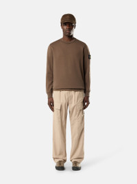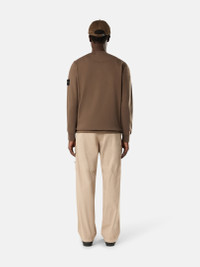 Crewneck sweatshirt in organic cotton fleece, featuring raglan sleeves, overlock seams, ribbed trims, and a lunette detail under the back neckline. Midweight. Garment dyed. FABRIC RESEARCH AND TREATMENT Crewneck sweatshirt in organic cotton fleece. Midweight. Garment dyed. STYLE AND FIT Ribbed neckline. Lunette under back neckline with internal reinforcement. Raglan sleeves on back. Stone Island badge on left sleeve. Ribbed cuffs and bottom band. Overlock stitching at seams. Regular fit. COMPOSITION AND CARE External Fabric: 100% Cotton Ribbing: 99% Cotton 1% Elastane / Spandex