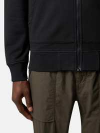 Hooded zipper-up sweatshirt in organic cotton fleece featuring hand pockets with slanted entrance and elasticated ribbed trims. Garment dyed. FABRIC RESEARCH AND TREATMENT Hooded zipper-up sweatshirt in organic cotton fleece. Garment dyed. STYLE AND FIT Drawstring hood. Patch hand pockets with slanted entrance. Stone Island badge on left sleeve. Elasticated ribbed cuffs and bottom band. Zipper fastening. Regular fit. COMPOSITION AND CARE External Fabric: 100% Cotton. Ribbing: 98% Cotton 2% Elastane / Spandex