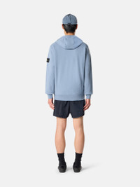 Zipper-up hooded sweatshirt in organic cotton fleece, featuring raglan sleeves, hand pockets, overlock seams, and ribbed trims. Midweight. Garment dyed. FABRIC RESEARCH AND TREATMENT Zipper-up hooded sweatshirt in organic cotton fleece. Midweight. Garment dyed. STYLE AND FIT Drawstring hood. Angled hand pockets with internal tape reinforcement. Lunette under back neckline with internal reinforcement. Raglan sleeves on back. Stone Island badge on left sleeve. Ribbed cuffs and bottom band. Zipper fastening. Overlock stitching at seams. Regular fit. COMPOSITION AND CARE External Fabric: 100% Cotton Ribbing: 99% Cotton 1% Elastane / Spandex