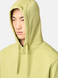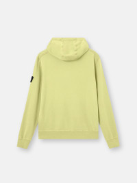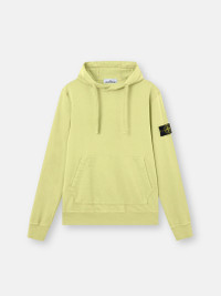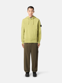 Hooded sweatshirt in organic cotton fleece featuring overlock seams, a pouch pocket with slanted entrances, and elasticated ribbed trims. Garment dyed. FABRIC RESEARCH AND TREATMENT Hooded sweatshirt in organic cotton fleece. Garment dyed. STYLE AND FIT Drawstring hood. Overlock seams. Pouch pocket with slanted entrances. Stone Island badge on left sleeve. Lunette under back neckline with inner lining. Elasticated ribbed cuffs and bottom band. Regular fit. COMPOSITION AND CARE External Fabric: 100% Cotton. Ribbing: 98% Cotton 2% Elastane / Spandex